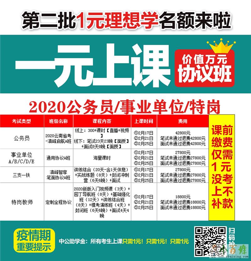 你没看错,只要先交1块钱就能上中公教育几万元的协议班;小+百+姓+网